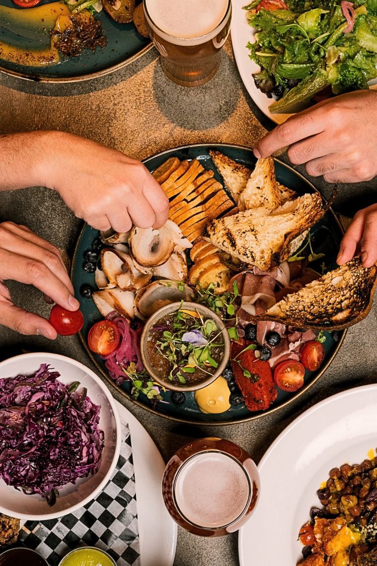 Prosciutto, mousse de foie de volaille, saucissons lyonnais aux pistaches, croûtons, focaccia maison